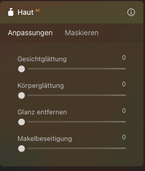 Portrait AI Hautretusche, Augenverbesserung, Zähne aufhellen – alles per Schieberegler. Funktioniert gut, solange du es nicht übertreibst. Die Gefahr: Es wird schnell zu glatt und plastisch. Hier ist definitiv dein Fingerspitzengefühl gefragt.