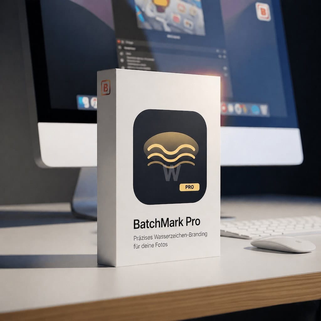 Nein – es sind zwei separate Apps, die separat erworben werden. BorderTool Pro gibt deinen Bildern einen eleganten Rahmen. BatchMark Pro setzt Wasserzeichen, Logo und EXIF-Daten drauf. Viele Fotografen nutzen beide nacheinander im selben Export-Workflow – sie ergänzen sich perfekt.
